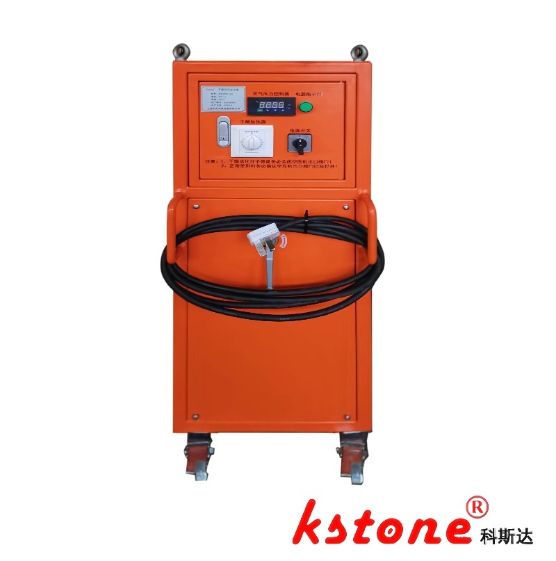 Sprzęt obejmuje cichy kompresor, urządzenie do filtracji wilgoci, urządzenie do aktywacji suszenia, system regulacji ciśnienia i rurę wydechową. Sprzęt obejmuje również pompę próżniową, urządzenie zapobiegające cofaniu się i rurociągi. Urządzenie może być również wyposażone w czujnik do testowania mikro wody online (opcjonalnie, model: KS3000-80-CZ4-WS), używany głównie do określenia, czy urządzenie wymaga aktywacji.